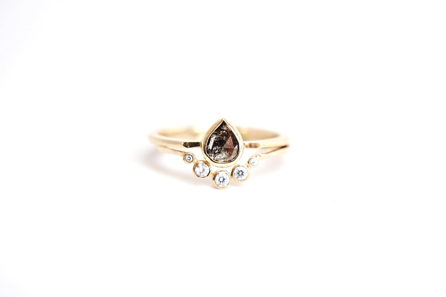 This ring is both modern and classic, referencing classic engagement styles while using a nontraditional engagement stone. Stack with any size of our forged, flat top bands for a unique bridal set.