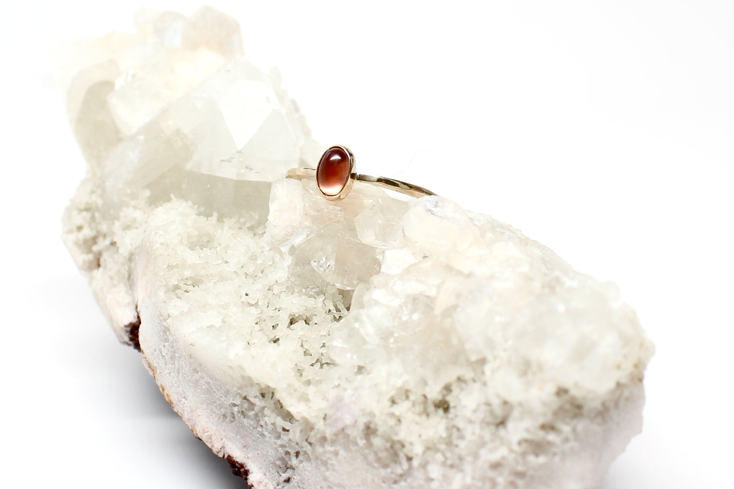 "Aubrey" Crescent Ring - Peach Sunstone - 14k Gold