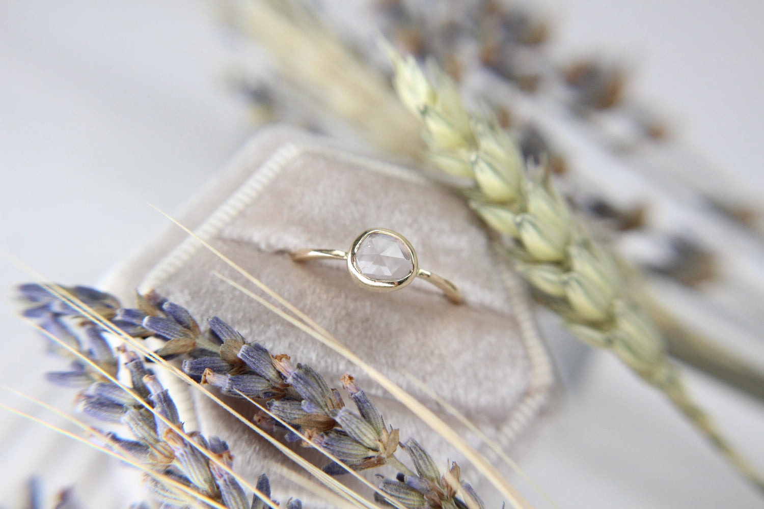 This gorgeous Spinel ring has a light grey-purple rosecut stone. These stones are freeform, so no two are exactly alike. Modern, minimal, and romantic, this is the perfect bohemian ring. Both elegant and nontraditional, this ring is perfect for every occasion you want to stand out in.