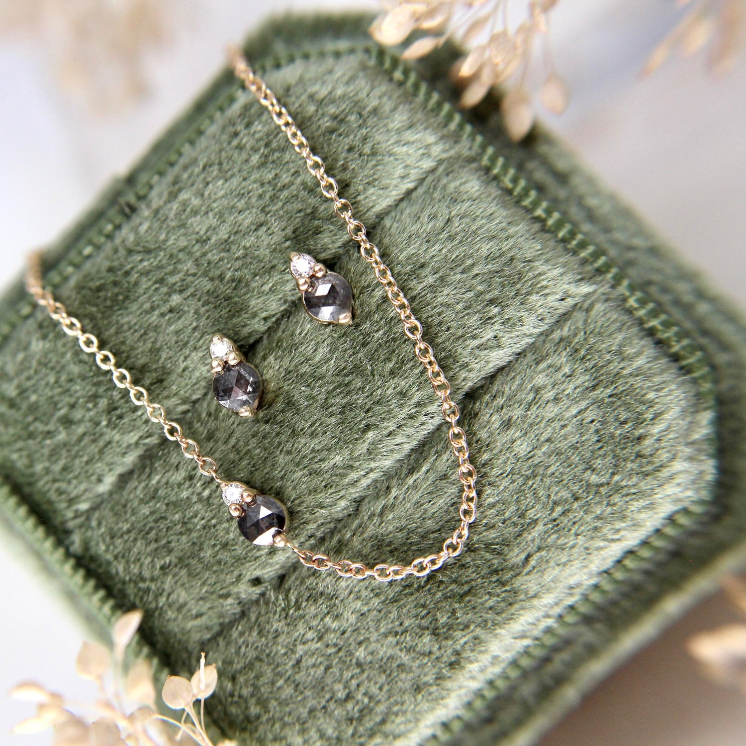 Smokey Salt and Pepper Diamonds, with White Diamond accent